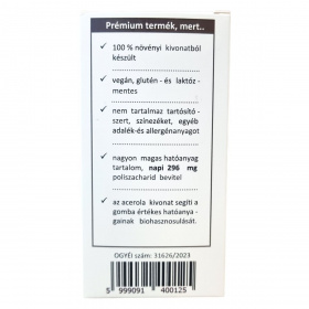 A termék kínai hernyógomba és acerola kivonatot tartalmazó növényi kapszula, amely hozzájárulhat az immunrendszer támogatásához és a gomba hatóanyagainak biohasznosulásához.