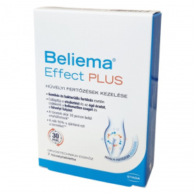 A Beliema® Effect PLUS egy orvostechnikai eszköz, amely 7 hüvelytablettát tartalmaz. Ez a termék kifejezetten a gombás vagy bakteriális hüvelyi fertőzések kezelésére készült, és a tünetek enyhítésében nyújthat segítséget, beleértve a viszketés és égő érzés csillapítását, a kellemetlen szag és hüvelyi folyás csökkentését vagy megszüntetését. A készítmény már 30 perc alatt enyhítheti a tüneteket, és a klinikai vizsgálatok szerint a nők jelentős része 4-5 napos kezelést követően tapasztalhatja a tünetek megszűnését. A kezelés során a hüvelytabletta támogatja a hüvelyi pH értékének fenntartását és a hüvelyflóra természetes egyensúlyának helyreállítását. A készítmény biztonságos és könnyen alkalmazható, nem hagy foltot. Alkalmazása 16 éven felüli nők számára javasolt, azonban terhesség vagy szoptatás időszakában a biztonságosság nem ismert, ezért ilyen esetben orvosi konzultáció ajánlott. A csomagolás használati útmutatót is tartalmaz a helyes alkalmazás érdekében.