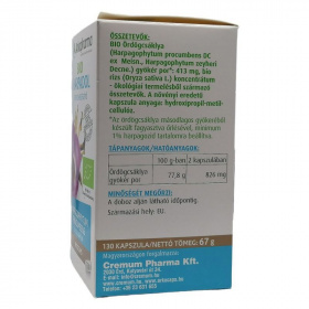 Sportolók szintén gyakran, sikerrel használják az intenzív edzésből adódó ín- és izomfájdalmak enyhítésére. Mivel a harpagosid segít a húgysav kiválasztásában, ezért köszvényes tünetek enyhítésére is alkalmazható. A fent leírt hatásokat több klinikai kutatás bizonyította. Ajánlható: rheuma, artritis, kiegészítő gyógyszerelésként a rheumatoid, arthritis kezelésében, köszvény. Adagolás: 2x1 kapszula étkezés közben. Akut fájdalom esetén az adag napi 4 kapszuláig növelhető. Mellékhatások: nincs ismert mellékhatása. Felhasznált részek: a másodlagos gyökerek 450mg fagyasztva őrült teljes növény por. Regisztrációs szám: 9714/2011 OÉTI.