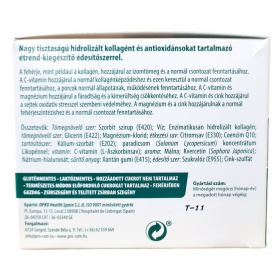 A termék nagy tisztaságú, hidrolizált kollagént és antioxidánsokat tartalmaz édesítőszerrel. A kollagén fontos fehérje, amely hozzájárulhat az izomtömeg és a normál csontozat fenntartásához. A C-vitamin szerepet játszhat a normál kollagénképződésben és ezen keresztül a csontok, valamint a porcok egészségének fenntartásában. A C-vitamin és a magnézium csökkenthetik a fáradtságot és a kimerültséget, míg a C-vitamin és a cink védelmet nyújthatnak a sejtek oxidatív stresszel szemben. A magnézium és a cink hozzájárulhatnak a normál fehérjeszintézishez és a csontozat megőrzéséhez. A termék összetevői között megtalálhatók további értékes anyagok, mint a coenzim Q10, kvercetin, hialuronsav és likopén is. Ez az étrend-kiegészítő nem helyettesíti a kiegyensúlyozott étrendet és az egészséges életmódot.