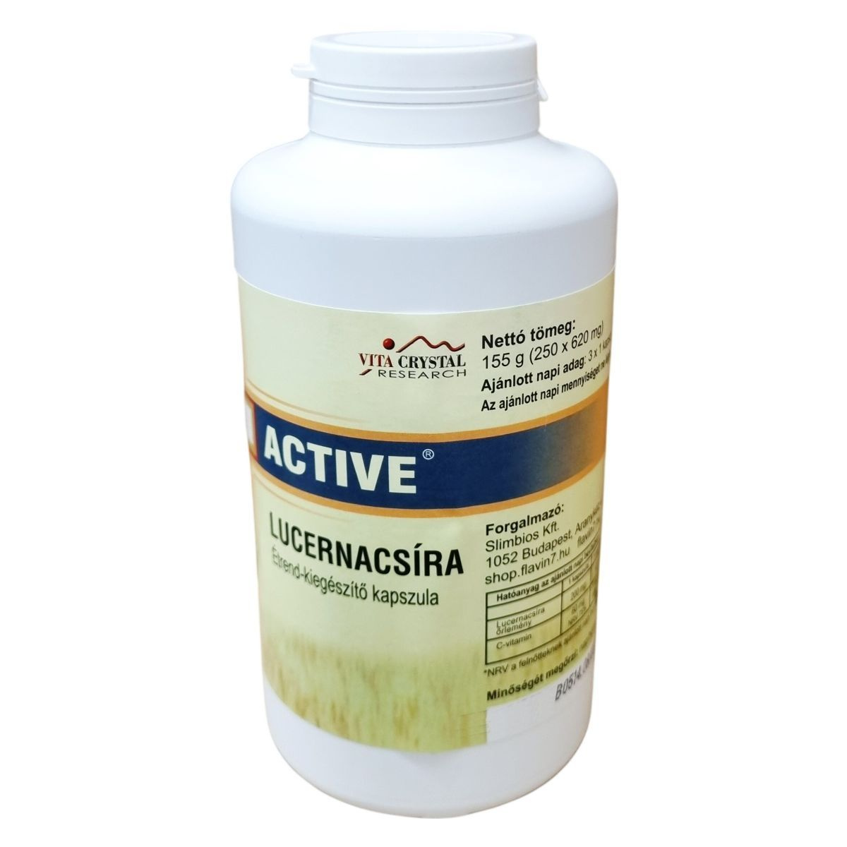 A termék lucernacsíra őrleményt és C-vitamint tartalmaz kapszula formájában, kiszerelése 250 darab, összesen 155 gramm. A C-vitamin hozzájárulhat az immunrendszer normál működéséhez, míg a lucernacsíra őrlemény az étrend kiegészítéseként szolgál. Az ajánlott napi adag három kapszula, amelyben 600 mg lucernacsíra őrlemény és 180 mg C-vitamin található meg. Az összetevők között szerepel továbbá cirok mag-héj őrlemény és a kapszula alkotórészei, mint a hipromellóz és cink-oxid. A termék fogyasztása nem helyettesíti a változatos, kiegyensúlyozott étrendet és az egészséges életmódot. Kisgyermekektől elzárva kell tartani, valamint a kapszulát száraz és hűvös helyen kell tárolni.