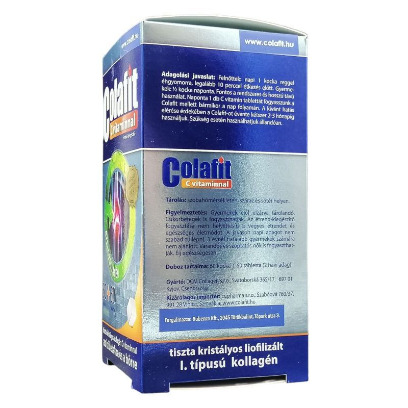 Táplálja és védi az ízületeket, valamint elősegíti az ízületek, ínszalagok, inak és a bőr egészségét. Az I. típusú kollagén alkotja a bőr, az inak és a csontok kollagén állományát. A Colafit a legkíméletesebb tartósítási módszerrel, liofilizálással (fagyasztott szárítás) készül, így nem tartalmaz vizet, és szivacsszerű állaga van. Ilyen módszerrel készül az űrhajósok, hegymászók és sportolók tápláléka is. Mindennemű adalékanyagtól és tartósítószertől mentes, semmilyen egyéb összetevőt, élelmiszeradalékot („E”-t) vagy nehézfémet nem tartalmaz. Nincs benne allergén, glutén sem cukor.