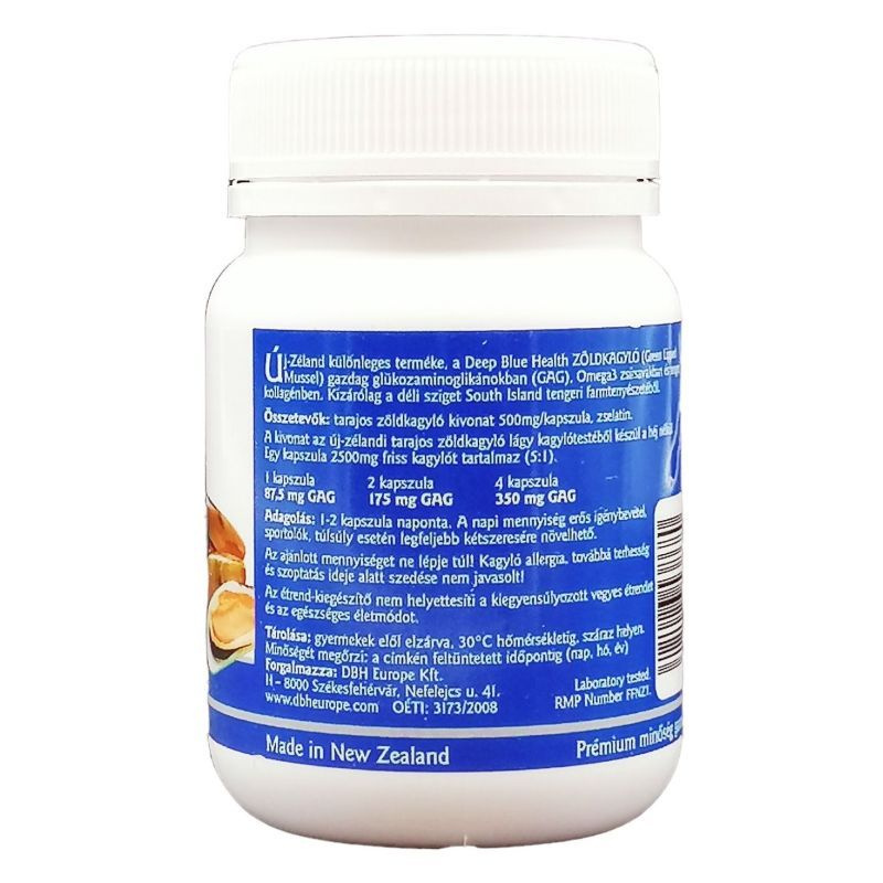 A kapszula 87.5 mg glükozaminoglikán (GAG), 5 féle Omega 3, továbbá komplex proteinek, vitaminok, ásványi anyagok és aminosavak gazdag forrása, melyek segíthetnek mérsékelni az izületi fájdalmakat és a diszkomfort érzéseket. Egy doboz 100 db 500 mg-os kapszulát tartalmaz. Egy kapszula tartalma: 500 mg tarajos zöldkagyló kivonat, ami 2500 mg friss kagylótestnek (5:1) felel meg.