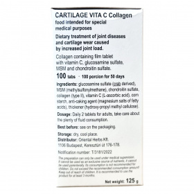 A Porc Vita C kollagén filmtabletta speciális gyógyászati célra szánt élelmiszer, amelyet ízületi megbetegedések és porckopás diétás ellátására fejlesztettek ki. A készítmény kollagént (II. típusú), glükózamin-szulfátot, metil-szulfonil-metánt (MSM), kondroitin-szulfátot és C-vitamint tartalmaz. A termék 100 db filmtablettát tartalmaz, ami 100 adagnak felel meg, 50 napos használatra. Az aktív összetevők támogatására szolgálhatnak a fokozott ízületi terhelés esetén kialakuló problémák kezelésében. A termék a helyes gyártási gyakorlat szerint készül, és minőségi előírásoknak megfelelően ellenőrzött. A készítményt csak orvosi felügyelet mellett szabad alkalmazni, kizárólagos tápanyagforrásként nem használható, és parenterálisan nem alkalmazható. Gyermekek számára nem ajánlott, és az ajánlott napi mennyiséget nem szabad túllépni. A termék legalább három hónapos folyamatos alkalmazása javasolt a legjobb eredmény érdekében.