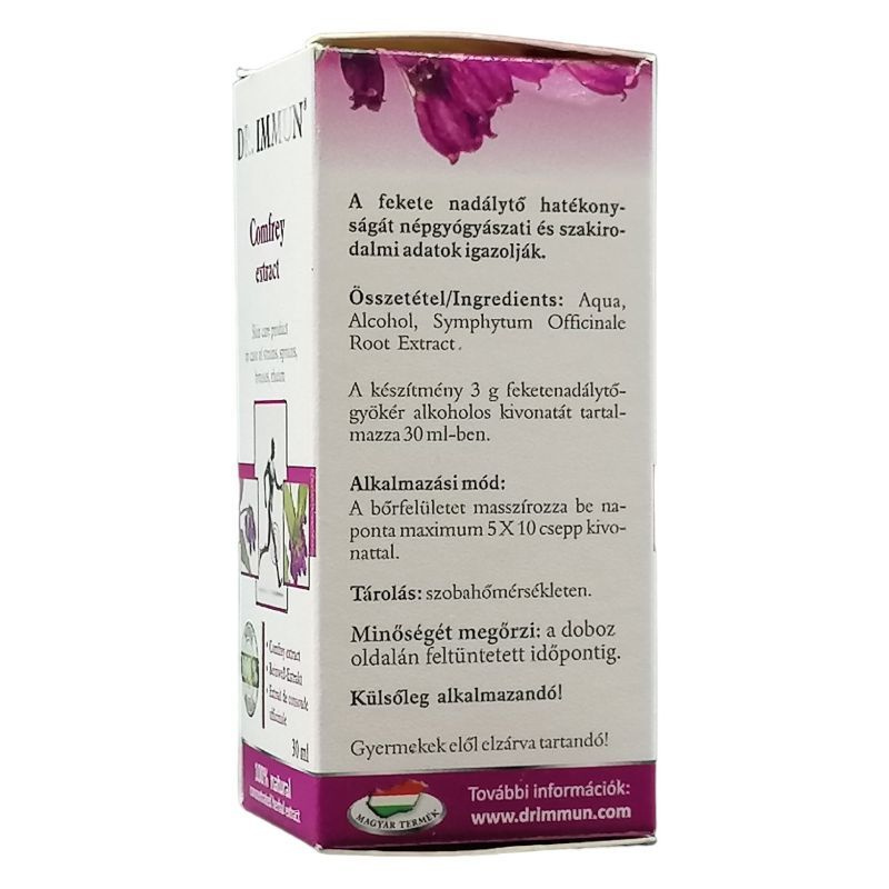 A fekete nadálytő hatékonyságát népgyógyászati és szakirodalmi adatok igazolják. Felhasználási javaslat: Óvatosan dörzsöljük be a bőrbe a fájó vagy sérült területen, illetve borogathatjuk is. Naponta max. 5x10 cseppet alkalmazzunk, legfeljebb 6 hétig.