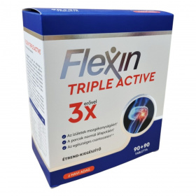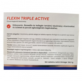 A Flexin Triple Active egy étrend-kiegészítő, amely glükozamin, Boswellia és kollagén tartalmával támogathatja az ízületek és porcok egészségét. A glükozamin az ízületi porc építőanyaga, míg a tömjénfa kivonata hozzájárulhat az ízületek mozgékonyságának megőrzéséhez. A D-vitamin az egészséges izomzat és csontozat fenntartásához járulhat hozzá. A termék 180 tablettát tartalmaz, ami 2 havi adagnak felel meg. A készítmény nem ajánlott tengeri kagylókra és/vagy rákfélékre érzékenyek számára, és nem helyettesíti a kiegyensúlyozott étrendet.