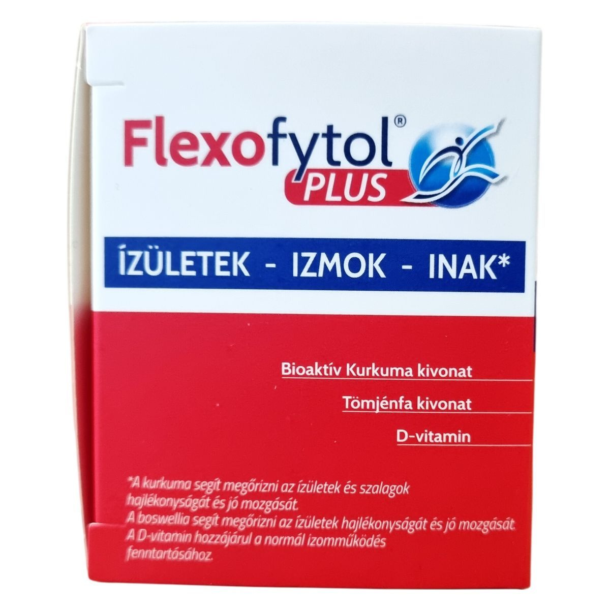 A Flexofytol® PLUS bioaktív kurkuma kivonatot, tömjénfa kivonatot és D-vitamint tartalmazó étrend-kiegészítő. A kurkuma segítheti az ízületek és szalagok hajlékonyságának és mozgásának megőrzését, míg a boswellia elősegítheti az ízületek hajlékonyságát és jó mozgását. A D-vitamin hozzájárulhat a normál izomműködés fenntartásához. A termék rendszeres, hosszabb távú fogyasztása mellett a gyomor irritációja nem várható. A kurkuma tartalom miatt a vizelet elszíneződése előfordulhat, ami normális jelenség. A termék nem alkalmas 6 éven aluli gyermekek számára, és bizonyos egészségügyi állapotok esetén orvosi konzultáció ajánlott.