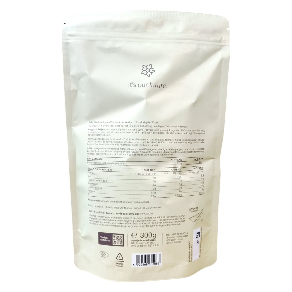 Az argentin marhakollagén peptideket jellemzi a tökéletes oldhatóság, a semleges íz és zamat. Könnyen bármilyen folyadékba keverhető, akár forró levesbe is, íze könnyen elfedhető meleg vízben, tejben vagy kókusztejben. Ízesítve is fogyasztható, például édesítve vagy vaníliával, így finom ital készíthető belőle. Müzlibe vagy turmixokba keverve még élvezetesebb, kiváló indítója lehet a napnak. A GAL adagolókanna segítségével a megfelelő mennyiség könnyen kimérhető. Egy-két próba után a mérés könnyed rutinná válik.