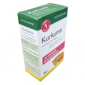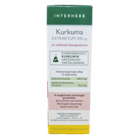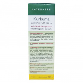 Az INTERHERB Kurkuma EXTRAKTUM 100 mg kapszula az ízületek támogatására készült, különösen magas, 95%-os kurkumin tartalommal. A kurkuma, amely az ázsiai konyha jellegzetes fűszere, hozzájárulhat az emésztőnedvek termeléséhez, a máj és az epe normál működéséhez, valamint az immunrendszer megfelelő működéséhez. A termék koncentrált extraktumot tartalmaz, amely 100 mg kivonat formájában 2500 mg növényi őrleménynek felel meg. A készítmény hazai fejlesztésű, bevizsgált alapanyagokból készült, és a megbízható minőséget garantálja.