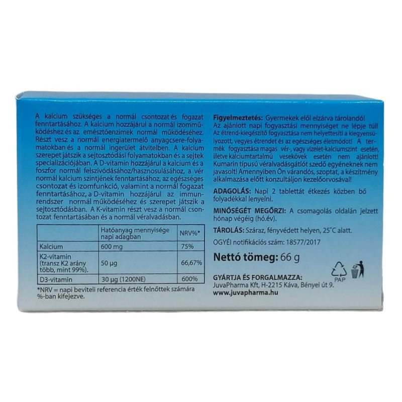 Hatóanyag mennyisége napi adagban: kalcium (kalcium citrát és kalcium karbonát fromájában): 600 mg, K2-vitamin: 50 µg, D3-vitamin: 30 µg.