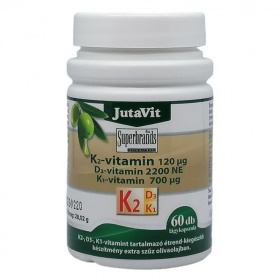 K2, D3, K1-vitamint tartalmazó étrend-kiegészítő készítmény extra szűz olívaolajban.