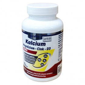 A JutaVit Kalcium Magnézium - Cink - D3 FORTE étrend-kiegészítő készítmény kalciumot és magnéziumot tartalmaz, melyek szükségesek a normál csontozat és fogazat fenntartásához, valamint hozzájárulhatnak a normál izomműködéshez. A magnézium emellett az idegrendszer megfelelő működéséhez is hozzájárulhat. A cink szerepet játszhat a csontozat, a bőr, a köröm és a haj normál állapotának fenntartásában, valamint az immunrendszer normál működésében. A D-vitamin elősegítheti a kalcium és a foszfor normál felszívódását és hasznosulását, továbbá támogathatja az egészséges csontozat, izomfunkció és a normál fogazat fenntartását. A termék titán-dioxid mentes, és 90 darab filmtablettát tartalmaz. Az adagolás napi egy tabletta, melyet folyadékkal szükséges bevenni, és igény esetén törhető vagy porítható a könnyebb bevitel érdekében.