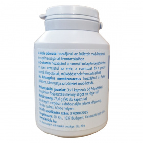 A Viola odorata hozzájárulhat az ízületek mobilitásának és rugalmasságának fenntartásához. A C-vitamin elősegítheti a normál kollagénképződést, ezáltal támogathatja az erek, a porcok és a csontozat normál állapotát és működését. Az Astragalus membranaceus támogathatja a fizikai jóllétet és az ízületek mobilitását. Nettó tömeg: 75,6 g (90 db kapszula). Az alapanyagok származási helye: EU, Kína.