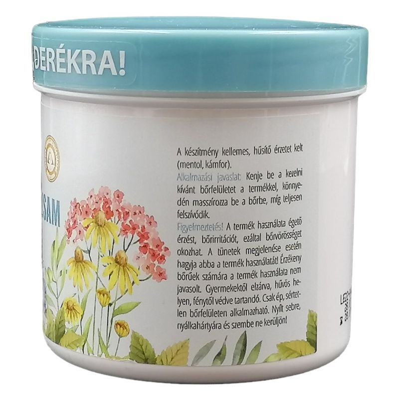 Gyógynövényes összetevőkből kifejlesztett balzsam magasabb mentol és kámfor tartalommal.