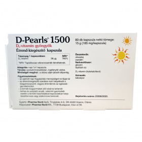 A D-Pearls 1500 D₃-vitamin gyöngyök kapszulánként 38 µg D₃-vitamint tartalmaznak. A D-vitamin hozzájárul a kalcium és foszfor hasznosulásához, az egészséges csontozat, fogazat és izomfunkció fenntartásához, valamint az immunrendszer normál működéséhez. A D-vitamin szerepet játszik a sejtosztódásban.