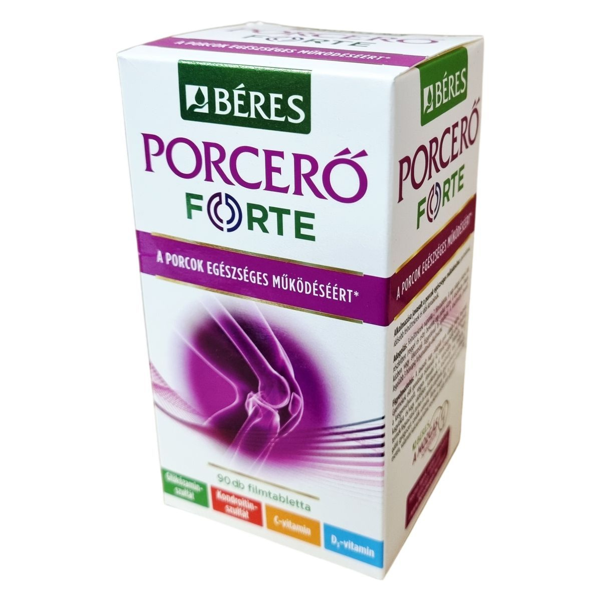 A Béres Porcerő FORTE egy komplex étrend-kiegészítő, amely C- és D3-vitamint, glükózamin-szulfátot és kondroitin-szulfátot tartalmaz. A C-vitamin hozzájárulhat a megfelelő kollagénképződéshez, ezáltal a porcok egészséges működéséhez. A D-vitamin segítheti az egészséges csontozat fenntartását, a kalcium és foszfor normál felszívódását és hasznosulását, valamint az egészséges izomfunkció megőrzését. A glükózamin-szulfát és kondroitin-szulfát a porcszövet természetes alkotórészei. A termék alkalmazása javasolt sportolóknak, idősebb felnőtteknek és időskorúaknak. A készítmény szedése legalább három hónapon keresztül ajánlott, és a napi adagot általában két részletben érdemes bevenni. A termék nem helyettesíti a kiegyensúlyozott étrendet és az egészséges életmódot. Terhes és szoptató anyák, gyermekek, véralvadásgátlót szedők, illetve bizonyos egészségügyi állapotú személyek számára nem ajánlott a fogyasztása.