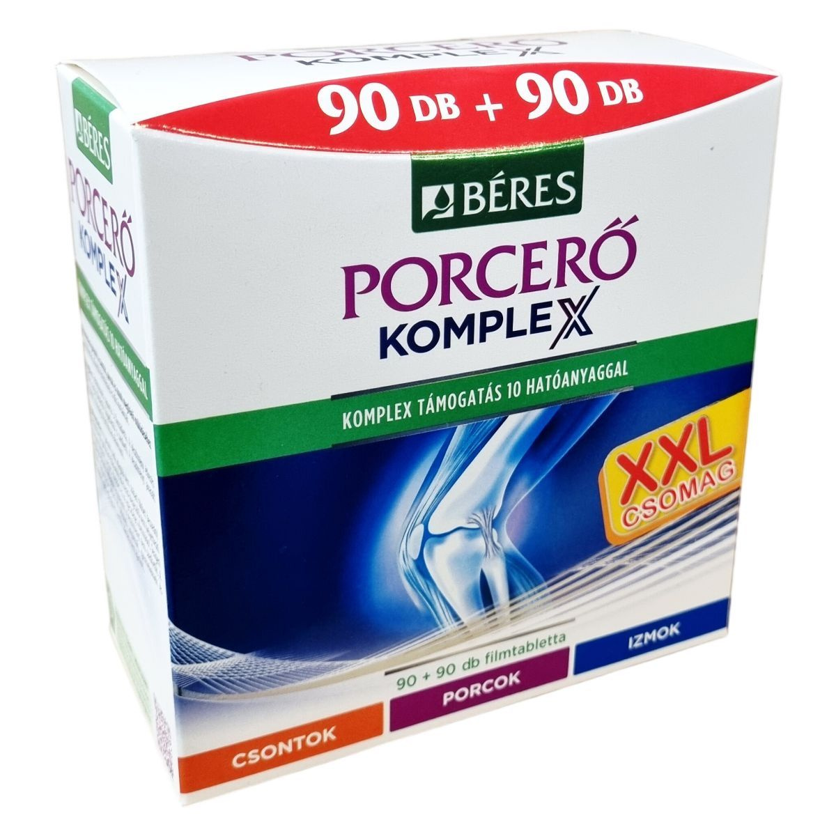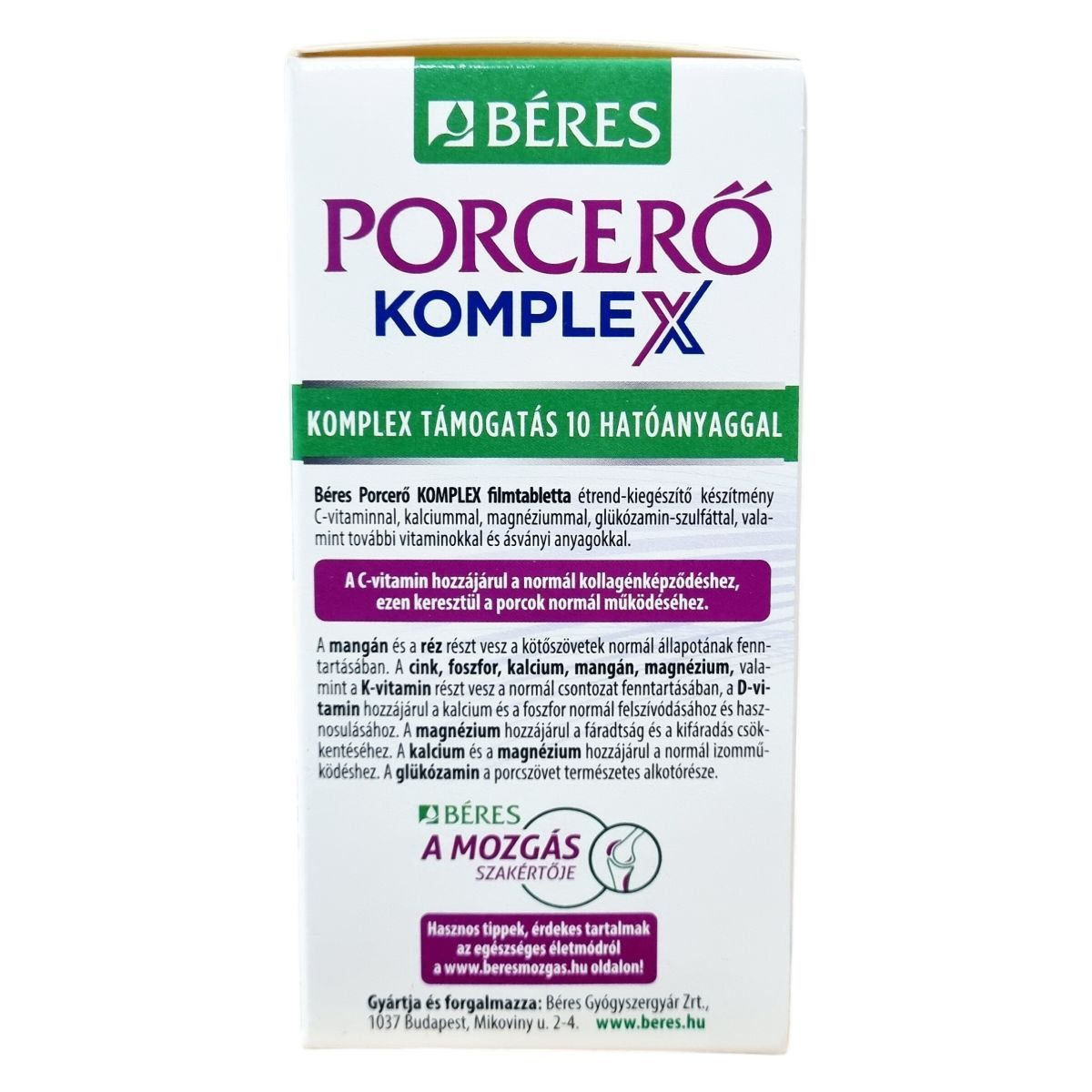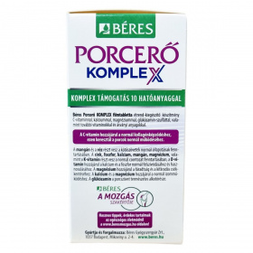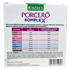 Béres Porcerő KOMPLEX filmtabletta étrend-kiegészítő készítmény C-vitaminnal, glükozamin-szulfáttal, kalciummal, magnéziummal, valamint további vitaminokkal és ásványi anyagokkal.