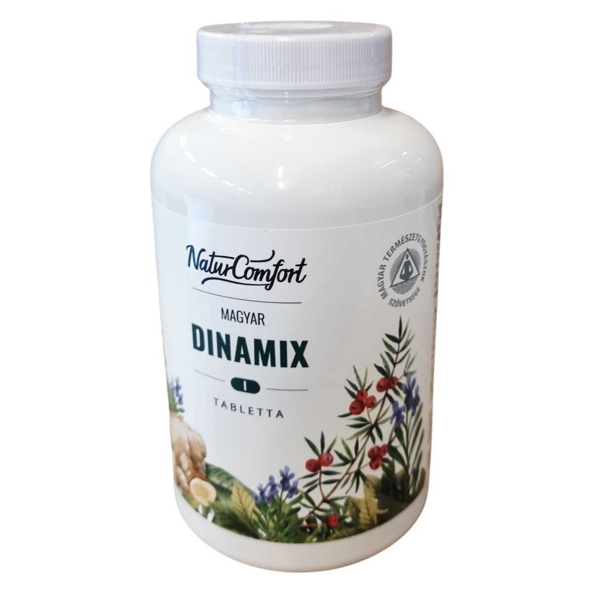 A NaturComfort Magyar Dinamix tabletta 120 darabos kiszerelésben kapható étrend-kiegészítő. A készítmény glükozamin-szulfátot tartalmaz rákfélékből, valamint egyéb hatóanyagokat, mint a kondroitin-szulfát, MSM (metil-szulfonil-metán) és különféle növényi kivonatokat (amerikai tőzegáfonya, lucerna levél, kurkuma gyökér, gyömbér gyökér, tömjénfa gyanta, ginzeng gyökér) a változatos összetétel érdekében. Továbbá kollagént, bromelaint, L-fenil-alanint, L-hisztidint és mangán-szulfátot is tartalmaz. Az étrend-kiegészítő glükozamin és kondroitin forrása rákfélékből származik. Az adagolás napi 3 tabletta, amelyet bő vízzel javasolt bevenni. A termék származási helye az Európai Unió. Az összetevők között szerepelnek stabilizátorok, térfogatnövelők és csomósodásgátlók is, melyek segítik a termék minőségének megőrzését. A készítményt olyan üzemben gyártották, ahol tejet, szóját, tojást, mogyorót és dióféléket is felhasználnak. A termék nem ajánlott várandósság és szoptatás alatt, valamint kisgyermekek elől gondosan elzárva kell tartani. A terméket fénytől védett, száraz, hűvös helyen javasolt tárolni.