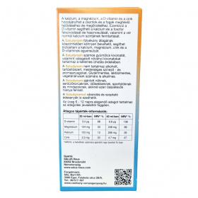A folyékony étrend-kiegészítő kalciumot, magnéziumot, cinket és D-vitamint tartalmaz, amelyek hozzájárulhatnak a normál csontozat és fogazat fenntartásához, valamint a megfelelő ásványianyag-egyensúlyhoz.