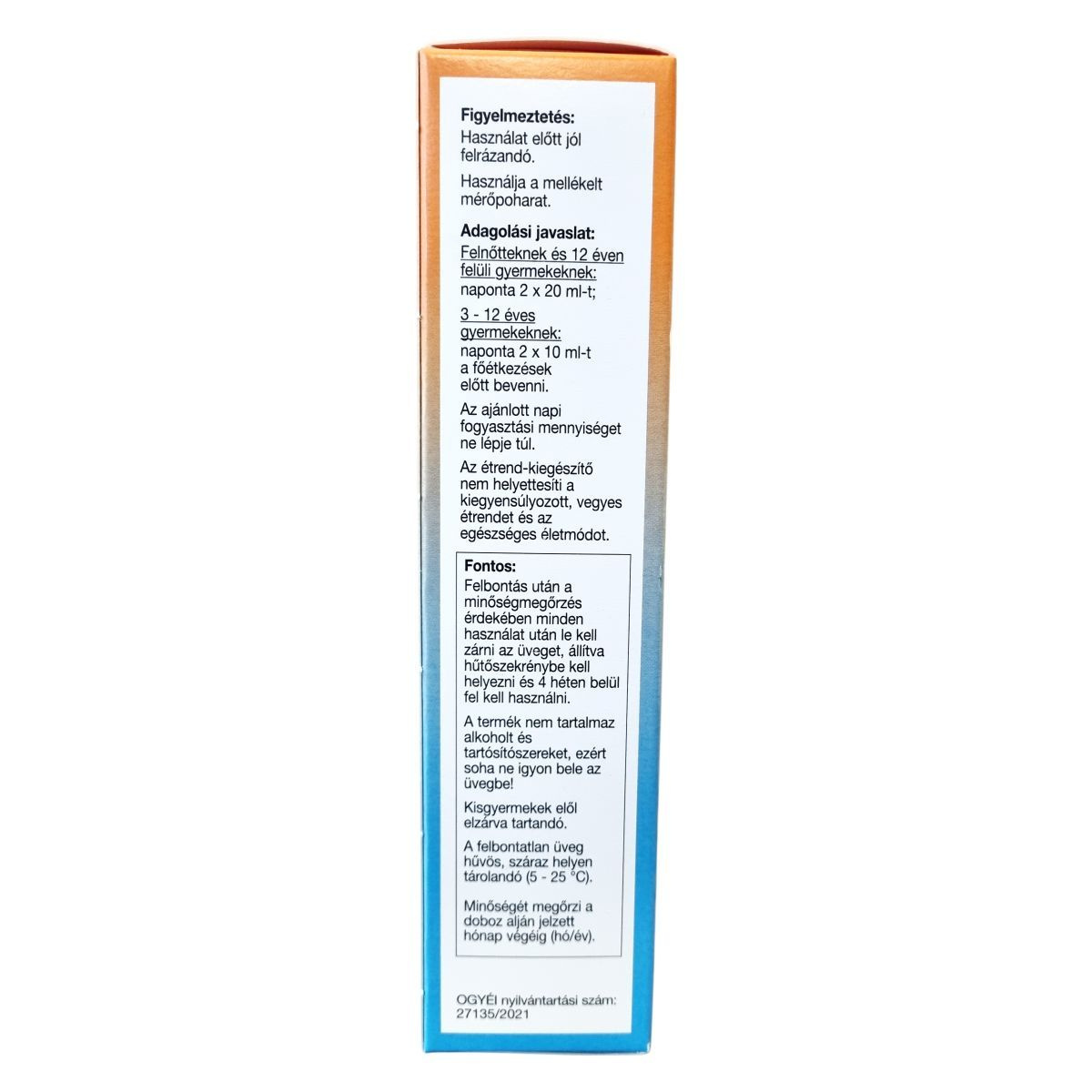 Használat előtt felrázandó. Az ajánlott napi mennyiséget ne lépje túl. Az étrend-kiegészítő nem helyettesíti a kiegyensúlyozott vegyes étrendet és az egészséges életmódot.