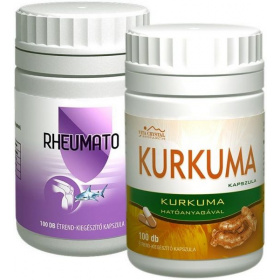 Kurkuma az "élet fűszere": a kurkumát a hagyományos indiai gyógyászatban, az ajurvédában több ezer éve alkalmazzák eredményesen. Emésztésserkentőként, rovarcsípések, kígyómarások és egyéb sebek fertőtlenítésére, láz- és fájdalomcsillapítására, illetve májbetegségekre használták. Hatékony gyulladáscsökkentő hatása miatt különféle ízületi bántalmak kiegészítő kezelésére régóta alkalmazzák. A kurkuma hozzájárul a bélrendszer megfelelő működéséhez, támogatja az emésztést és az intesztinális komfortérzést. Kurkumin: legfontosabb hatóanyaga a kurkumin, amely a kurkuma meghatározó sárga színét adja, és egyben a polifenolok hatalmas csoportjának egyik tagja. Amellett, hogy erős antioxidáns -vagyis megköti az egészséget károsító szabadgyököket- rendelkezik a polifenolokra, illetve a flavonoidokra jellemző általános egészségvédő tulajdonságokkal. Összetevők: Kurkuma por, zselatin (kapszula borítása). Hatóanyag az ajánlott napi bevitelben: Kurkuma: 500 mg. Felhasználási javaslat: 3x1 kapszula/nap. Az ajánlott napi mennyiséget ne lépje túl. Az étrend-kiegészítő nem helyettesíti a kiegyensúlyozott vegyes étrendet és az egészséges életmódot! Kiszerelés: 100 db. Crystal Complex Rheumato kapszula (100db): Mozgás fájdalmak nélkül! Ízületi gyulladások, ízületi kopások helyett! A Rheumatoid arthritis: Egy jelenleg ismeretlen eredetű autoimmun betegség, amely fájdalommal, mozgáskorlátozottsággal jár. A szervezet saját kötőszöveti elemeit idegenként ismeri fel és ellenük gyulladásos reakcióval védekezik. Az Ízületi belhártyája megvastagszik és akadályozza a normális működését. Az új kutatási eredményeknek köszönhetően egy hatékony komplexet sikerült összeállítanunk mely mind a fájdalmak csökkentését, mind pedig a gyulladások megszüntetését segítheti. MSM: Az MSM előnyei részben a sajtfalak rugalmasságát és áteresztőképességét helyreállító képességének tudhatóak be, ezzel lehetővé válik a toxinok ki-és a tápanyagok beáramlása. Ha a sejtek egyensúlyban vannak tartva, akkor az ízületekben és izmokban gyulladást okozó toxinok képződése megelőzhető. Ennek köszönhető, hogy az MSM a gyulladások és fájdalmak okát szünteti meg, ahelyett hogy csak a tüneteket kezelné. A kutatási eredmények szerint az MSM lehet a leghatásosabb recept nélkül kapható gyulladáscsökkentő. Glükózamin-szulfát: Szerepet játszik a szervezet ízületeiben lévő porc szerkezetének és funkciójának fenntartásában, és gyulladást csökkentő tulajdonsággal is rendelkezik. Segíti a súrlódásnak kitett ízületi szövetek működését és a porcszövetek újraképződését. Ezt többek között egy hazai vizsgálat is igazolta, melybe 163 térdartrózisos beteget vontak be. Akik glükózamin-szulfát-kezelésben részesültek, azoknál néhány hónap után lényegesen enyhült a fájdalom, mellékhatás pedig nem lépett fel. A terápiás kezelés során tapasztalható a kórfolyamat klinikai tüneteinek mérséklődése, a károsodott porcállomány fokozatos regenerálódás a és újraképződése. Kondroitin-szulfát: Az elmúlt években számos vizsgálatot végeztek a glükózamin-szulfát és a kondroitin-szulfát terápia hatékonyságának megítélésére, illetve számos az eddigi eredményeket összegző tanulmány látott napvilágot ebben a témában. Ezeknek a nagy betegcsoportot felölelő vizsgálatoknak az eredménye egyértelműen azt mutatta, hogy mind a glükózamin, mind a kondroitin-szulfát, illetve a kettő kombinációja hatékony szer az ízületi kopás kezelésében. Az eddigi elvégzett nagy betegszámú vizsgálatok alapján továbbá úgy tűnik, hogy az enyhe és középsúlyos ízületi kopások esetén a tüneteket a korábbi gyulladásgátlókkal hasonló mértékben csökkentik a glükózamint és kondroitin-szulfátot tartalmazó készítmények. C-vitamin: A C-vitamin vagy más néven aszkorbinsav az egyik legismertebb esszenciális vitamin, amit a szervezetünk nem képes előállítani, viszont működéséhez elengedhetetlen. Immunerősítő hatása és egyben antioxidáns sejtvédő hatása Szent-Györgyi Albert óta jól ismert. Hiánya komoly betegségek kialakulásához vezethet. A bőr kiszáradása, emésztési zavarok, fogínysorvadás (fogínyvérzés) következtében meglazult fogak. Rosszabb időn (éveken, évtizedeken), keresztül fennálló C-vitamin hiány esetén rendkívüli mértékben megemelkednek a szív- és érrendszeri kockázatok vagy a rák kialakulásának veszélyei. Összetevők: MSM (Methylsulfonyl methane), glükozamin-szulfát, C-vitamin (aszkorbinsav), kalcium-karbonát, zselatin, kondroitin-szulfát 93% (cápaporc). Hatóanyagok az ajánlott napi bevitelben: MSM (Methylsulfonyl methane): 750 mg, Glükozamin-szulfát: 450 mg, C-vitamin: 450 mg, RDA 562,5%, Kalcium: 117 mg, RDA 14,6%, Kondroitin-szulfát 93% 60 mg. RDA a felnőttek ajánlott napi beviteli %-a. Felhasználási javaslat: 3x1 kapszula/nap, max. 3x2 kapszula/nap. Az ajánlott napi mennyiséget ne lépje túl. Az étrend-kiegészítő nem helyettesíti a kiegyensúlyozott vegyes étrendet és az egészséges életmódot! Kiszerelés: 100 db.
