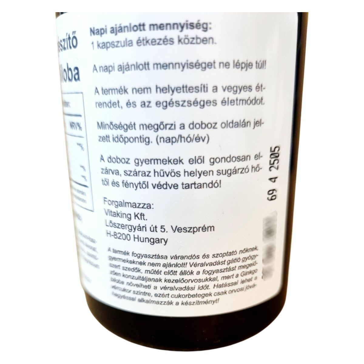 A Vitaking Ginkgo Biloba étrend-kiegészítő 90 kapszulás kiszerelésben kapható, és segíthet a kognitív funkciók fenntartásában. A termék 60 mg Ginkgo Biloba levél kivonatot tartalmaz kapszulánként, amely flavon glikozidokat és terpén laktónokat is tartalmazhat. A napi ajánlott mennyiség 1 kapszula étkezés közben, és fontos, hogy a napi ajánlott mennyiséget ne lépjük túl. A termék nem helyettesíti a vegyes étrendet és az egészséges életmódot. Tárolása száraz, hűvös helyen, gyermekektől elzárva javasolt. A termék fogyasztása nem ajánlott várandós és szoptató nőknek, gyermekeknek, valamint véralvadást gátló gyógyszert szedőknek és cukorbetegeknek orvosi konzultáció nélkül.