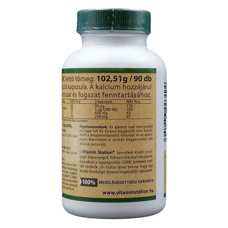 Hatóanyag/kapszula: kalcium: 250 mg, magnézium: 125 mg, D3-vitamin: 2,5 mcg (100 NE), K2-vitamin: 45 mcg.