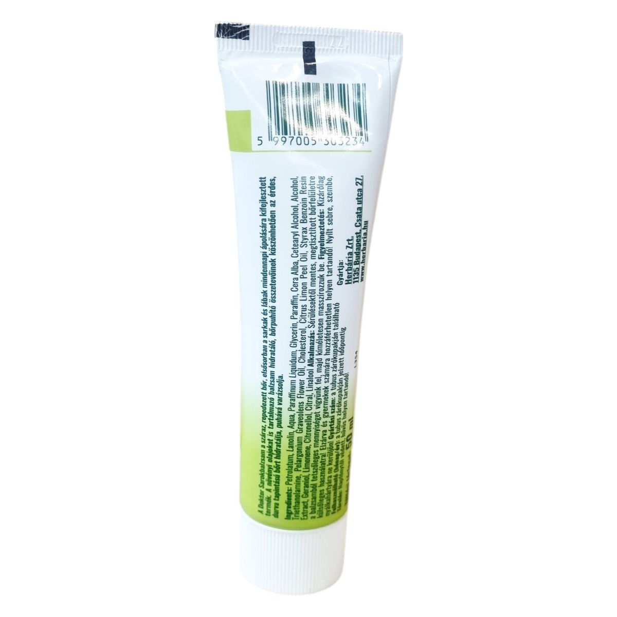 A Doktor Sarokbalzsam a száraz, repedezett bőr, elsősorban a sarkak és lábak mindennapi ápolására kifejlesztett készítmény. A benne lévő lanolin, paraffinolaj és paraffint tartalmazó balzsam hidratáló, bőrpuhító összetevőinek köszönhetően az érdes, durva lábbőrt hidratálja, puhává varázsolja. A sarkak és lábak ápolására ajánlott. Vonalkód: 5997005303234. Teljes tömeg: 60 g. Töltési térfogat: 50 ml.