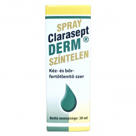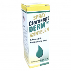A Clarasept DERM egy színtelen kéz- és bőrfertőtlenítő spray, mely hatékony védelmet nyújt a különböző kórokozók ellen, használata egyszerű és gyors megoldást kínál a higiénia fenntartására.