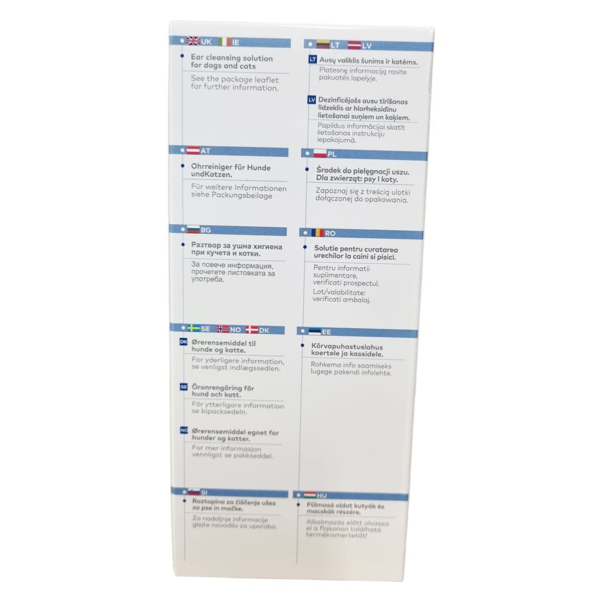 A termék egy fülmosó oldat, amelyet kutyák és macskák számára fejlesztettek. Több európai országban forgalmazzák, ahol a használati utasítás és a további információk mindig elérhetők a csomagoláson található betegtájékoztatóban. Használatával segíthet a fülhigiénia fenntartásában és a fül ápolásában. A termék Olaszországban készült.