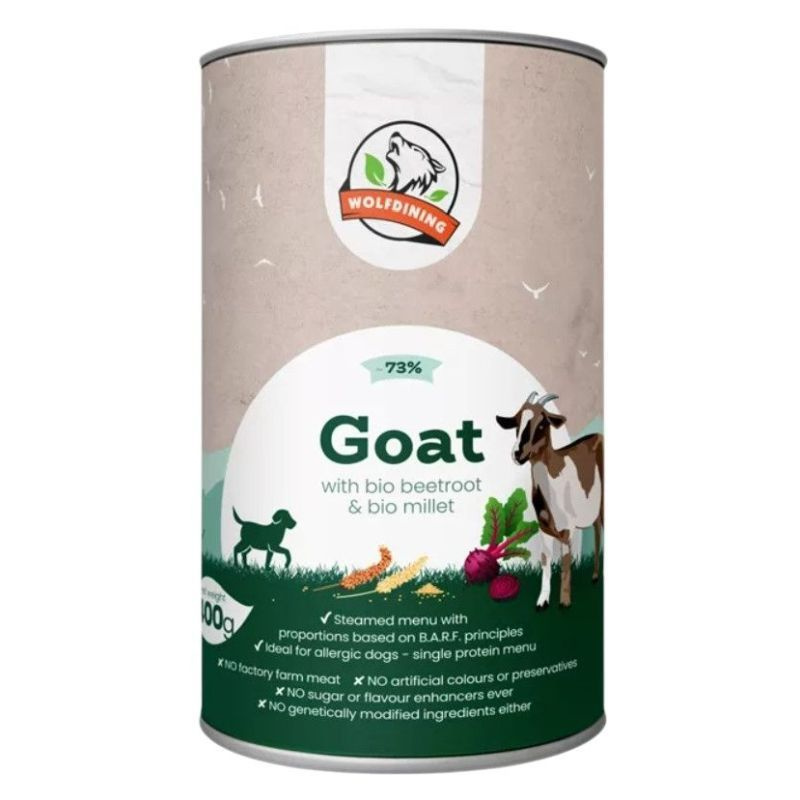 Teljes értékű párolt eledel felnőtt kutyáknak. 73% kecskehús bio céklával és bio kölessel gazdagítva a BARF étrend alapelvei szerint készült.