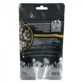 Fagyasztva szárított jávorszarvas jutalomfalat - jó kutyáknak. 150-200g hús felhasználásával készül. A jávorszarvas húsa mellett belsőséget is csempésztek bele.