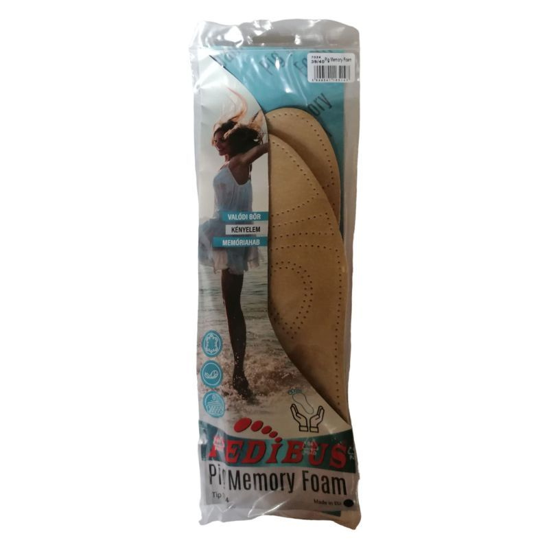 Memóriahabos talpbetét, rezgéscsillapító funkció, sertésbőr felsőrész. Hab alsórész, szárazon és frissen tartja a lábat, harántemelős, gerinckímélő sarokágy.