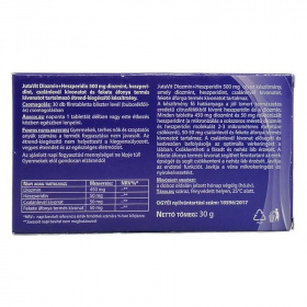 Adagolás: naponta 1 tablettát délben vagy este étkezés közben egészben lenyelni. Napi adag tartalmaz: Diozmin 450mg, Heszperidin 50mg, Csalánlevél kivonat 50mg, Fekete áfonya termés kivonat 50mg. Összetevők: diozmin, tömegnövelő szerek (dikalcium-foszfát, hidroxi-metil-cellulóz), heszperidin, csalálevél kivonat, fekete áfonya kivonat, csomósodást gátló (szilícium dioxid, magnézium-sztearát, talkum), fényező anyag (sztearin sav, kókusz olaj), színezékek (titán-dioxid, vörös vas oxid, sárga vas oxid), nedvesítőszer (polidextróz). Tárolás: Száraz, fényvédett helyen, 25C alatt. Fontos figyelmeztetés: A termék gyermekek kezelésére nem alkalmas. Terhesség és szoptatás alatt a termék fogyasztása nem javasolt. Az étrend-kiegészítő nem helyettesíti a kiegyensúlyozott, vegyes étrendet és az egészséges életmódot. Az ajánlott napi fogyasztási mennyiséget ne lépje túl! Gyermekek elől gondosan elzárva tartandó!