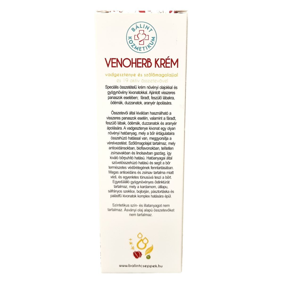 A Venoherb krém speciális összetételű kozmetikai készítmény, amely növényi olajok és gyógynövény-kivonatok kombinációját tartalmazza. Vadgesztenye kivonata a bőr ápolására szolgál, szőlőmagolaj-tartalma antioxidánsokban és telítetlen zsírsavakban gazdag. Hatóanyagai hozzájárulhatnak a bőr természetes védőrétegének fenntartásához, valamint a bőr tónusának és komfortérzetének javításához. Gyógynövényes őstinktúrája kardamom, útifű, sáfrányos szeklice, bojtorján, pásztortáska és palástfű kivonatok komplex összetételére épül.
