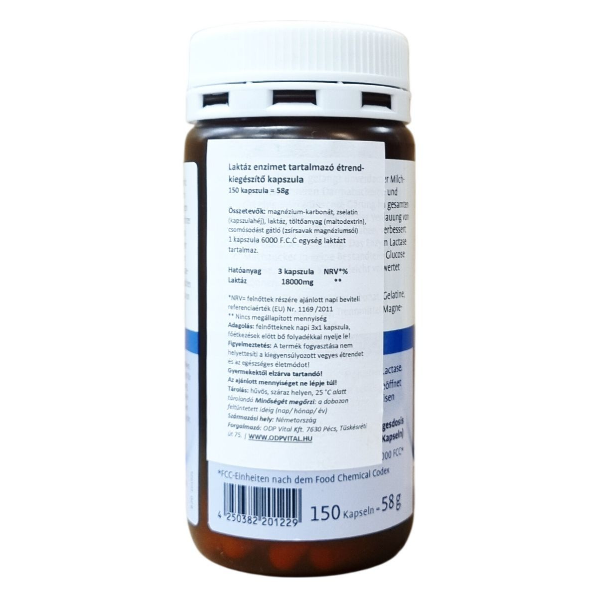 Ez a kapszula 6000 FCC egység laktázt tartalmaz adagolásonként, amely egyedileg igazítható az elfogyasztott tejcukor mennyiségéhez és a szervezet laktáztermeléséhez. Az adagolás kezdésével ajánlott további tanácsot kérni a laktáz funkciójáról táplálkozásában. A terméket világos, száraz helyen, 25 °C alatt kell tárolni, és nem helyettesíti az egészséges életmódot. A kapszula németországi gyártású, ODP Vital Kft. forgalmazza Magyarországon.
