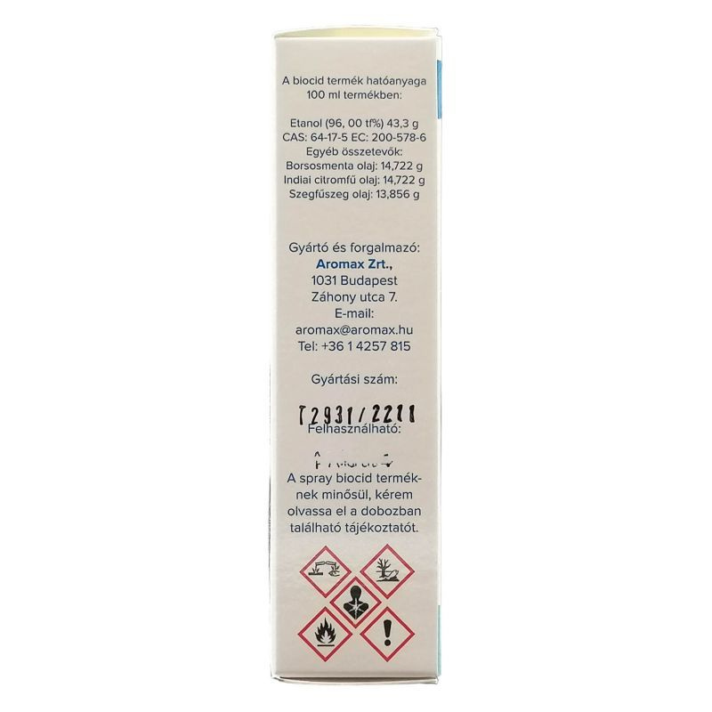 Az egzotikus illatú keverék használatát elsősorban munkahelyek, dolgozószobák levegőjének frissítésére ajánljuk. Ezen felül a készítmény a nyári időszakban nyaralókban, hétvégi házakban, szállodai szobákban is alkalmazható. Összetevők: borsosmenta-, indiai citromfű- és szegfűszegolaj, etil-alkohol (96 %-os). Tűzveszélyes (F) Irritatív (Xi) Környezeti veszély (N).