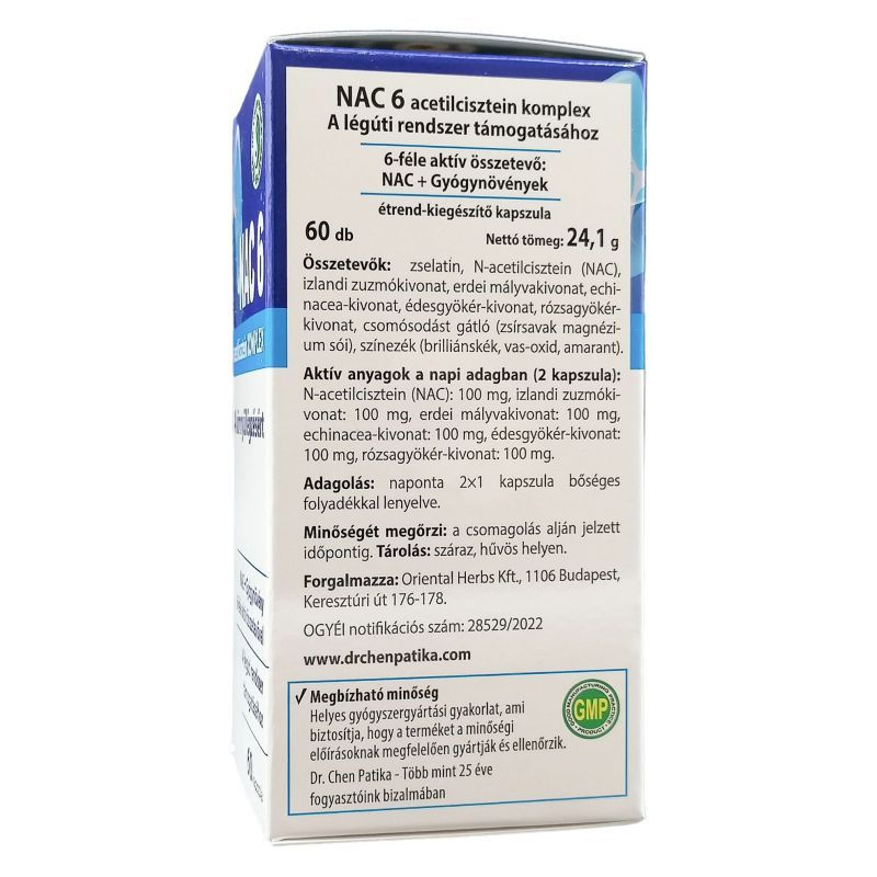 Az N-acetil-cisztein (NAC) a cisztein aminosav acetilált származéka, amely a szervezetben a glutation nevű antioxidáns egyik fontos előanyaga. A NAC szerepet játszhat az oxidatív stressz elleni védekezésben, mivel hozzájárulhat a sejtek redox-egyensúlyának fenntartásához és a glutation-szintézis támogatásához. Emellett hatással lehet bizonyos nyákoldó folyamatokra is, mivel képes befolyásolni a nyák szerkezetét alkotó diszulfidkötéseket. Étrend-kiegészítőként gyakran alkalmazzák antioxidáns támogatás, májanyagcsere-folyamatok és légúti funkciók élettani működésének támogatására. A NAC a szervezetben gyorsan metabolizálódik ciszteinné, amely több biokémiai útvonalban is részt vesz. Megfelelő adagolás mellett általában biztonságosnak tekinthető, azonban egyéni egészségi állapot vagy gyógyszerszedés esetén körültekintés szükséges. Egyéni egészségügyi állapot vagy gyógyszerszedés esetén javasolt szakemberrel konzultálni.