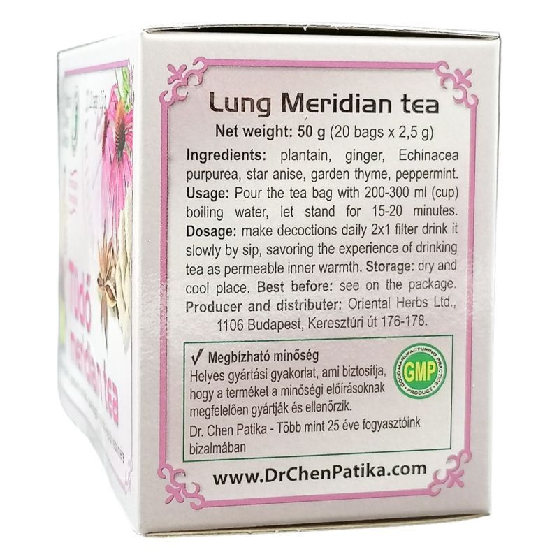 A lándzsás útifű és a kerti kakukkfű kedvező hatással vannak a torokra. A csillagánizs nyugtatja a torkot, a felső légutakat. A borsmenta támogatja az immunrendszert, a gyömbér segít fenntartani a légúti rendszer egészségét. A termék fogyasztása bármely összetevőre való érzékenység esetén nem ajánlott. Gyermekek elől elzárva tartandó! Nettó tömeg: 50 g (20 filter x 2,5 g).