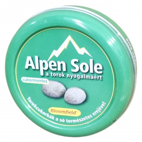 Az Alpen Sole cukormentes torokcukorka elsősorban a torok nyugalmának elősegítésére készült, természetes alpesi sós forrásvíz és gyógynövények felhasználásával. A termék aromái gyógynövény-kivonatokból és illóolajokból származnak, a kellemes ízélményt méz gazdagítja. A termék színezőanyagként ammóniás-karamellt tartalmaz, édesítőszere az aszpartám. Nyomokban fenil-alanint tartalmaz, ezért a terméket fogyasztók erre érzékenyeknek figyelmesnek kell lenniük. A cukor teljes mértékben helyettesítve van isomalttal és többértékű alkohollal, amelyek hozzájárulnak a cukormentességhez. A túlzott mértékű fogyasztása hashajtó hatású lehet. A termék energiatartalma 100 g-onként 985 kJ vagy 235 kcal, nagyon alacsony zsírtartalommal és minimális cukortartalommal rendelkezik. Csomagolását célszerű fénytől védett, száraz és hűvös helyen tárolni a minőség megőrzése érdekében.