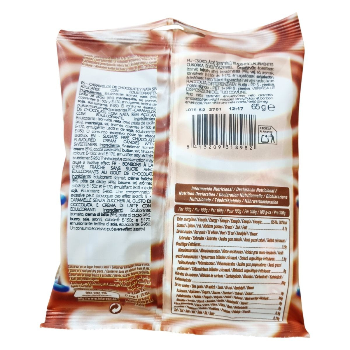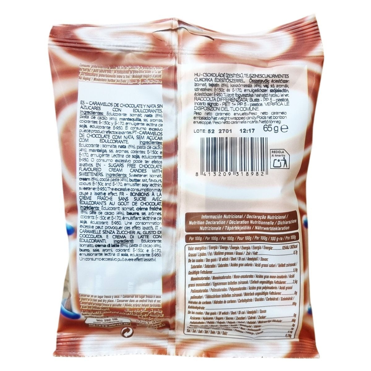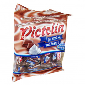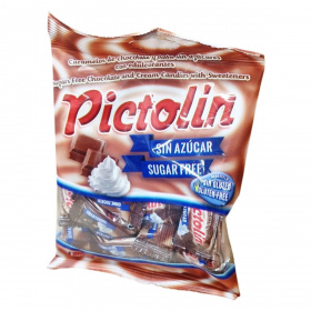Ez a Pictolín márkájú cukormentes csokoládé- és tejszínes karamella izomalt és egyéb édesítők felhasználásával készült, amely kakaómasszát és vajat is tartalmaz, hogy autentikus csokoládéízt biztosítson. A terméket édesítőszerekkel ízesítették, és mesterséges színezékekkel díszítették. A csomagolás anyaga újrahasznosítható műanyag, amely szerepel a termék környezetbarát csomagolási rendszerében. A termék 65 grammos kiszerelésben kapható, és fogyasztása közben figyelembe kell venni, hogy túlzott bevitel esetén hashajtó hatást válthat ki.