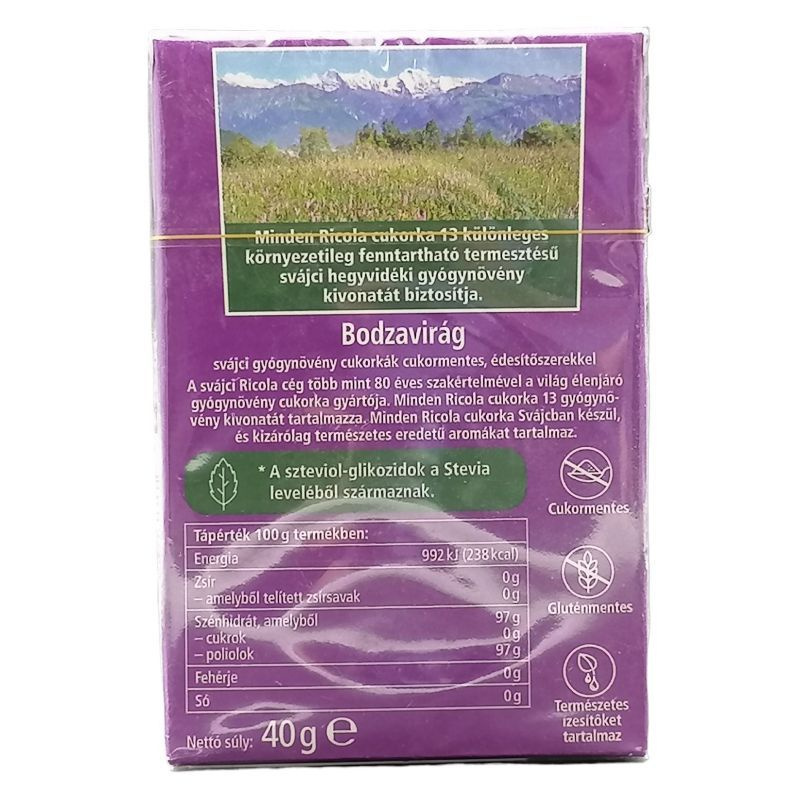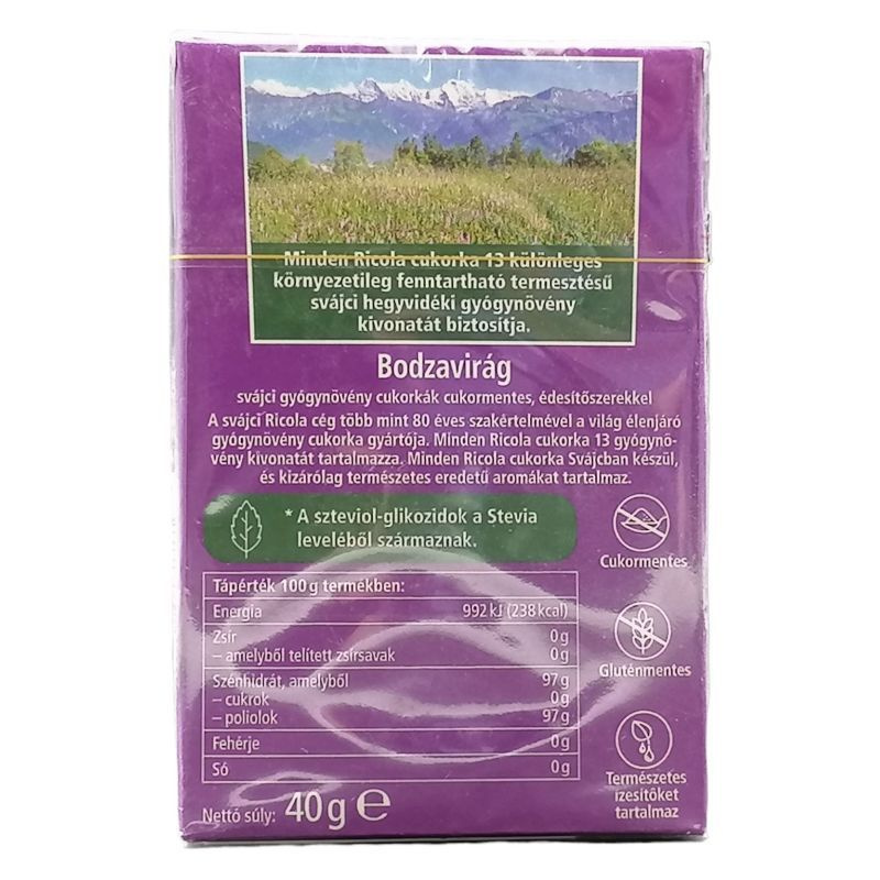 A bodzavirág friss íze, kombinálva a 13 gyógynövényből álló keveréken alapszik, melyből a Ricola világhírű gyógynövény cukorkái készülnek.
