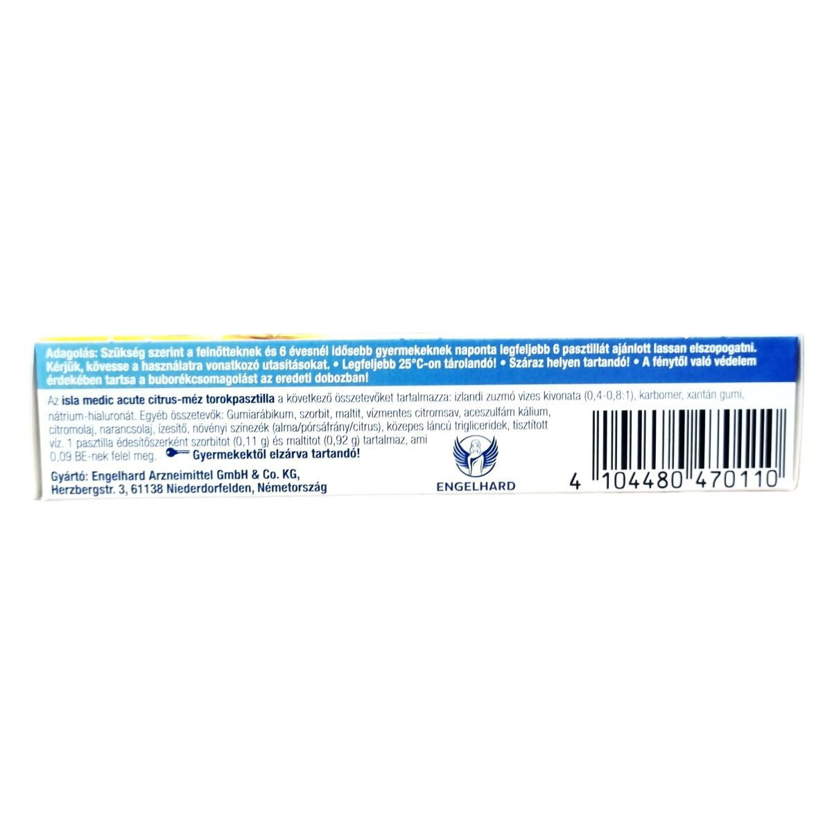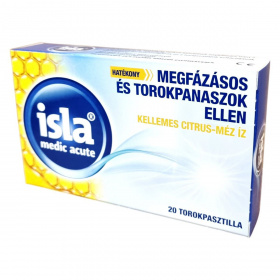 Az isla medic acute torokpasztilla a megfázás és torokfájás jellegzetes tüneteinek, például torokirritációnak és rekedtségnek enyhítésére készült termék lehet. Kifejezetten támogatni szándékozik a nyálkahártya szárazságának és a hangszalagok irritációjának csökkentését. A készítmény egyedülálló hidrogél komplexet tartalmaz hialuronsavval és izlandi zuzmó gyógynövénnyel, melyek hozzájárulhatnak a torokkomfort javításához. Az egyes pasztillák szorbitot és maltitot tartalmaznak édesítőszerként, és egy pasztilla 0,09 BE-nek felel meg. Kellemes citrus-méz ízű, ezért a torokpasztillák szopogatása kellemes élményt nyújthat. A termék kizárólag felnőttek és 6 évesnél idősebb gyermekek számára javasolt.