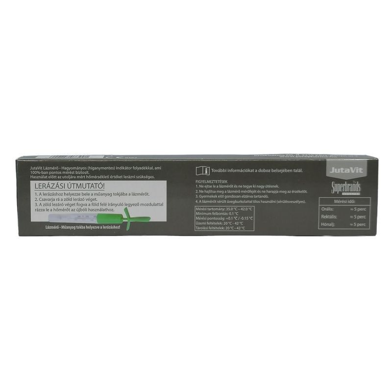 Lázmérő (higanymentes) indikátor folyadékkal, ami 100%-ban pontos mérést biztosít.