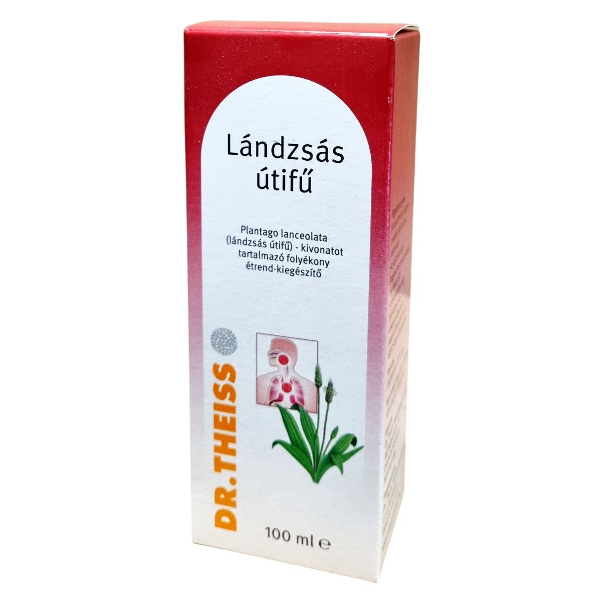 A Dr. Theiss Lándzsás útifű étrend-kiegészítő egy folyékony készítmény, amely lándzsás útifű-kivonatot tartalmaz. A termék célja, hogy támogassa a felső légutak egészséges működését. Az étrend-kiegészítő alkoholt nem tartalmaz, és 3 éves kor felettiek számára ajánlott. A termék szacharóz szirupot, invertcukor szirupot, vizet, lándzsás útifű-kivonatot és kálium-szorbátot tartalmaz. Fontos, hogy a készítményt kisgyermekek elől elzárva tartsuk, és ne lépjük túl az ajánlott napi fogyasztási mennyiséget. A termék nem helyettesíti a kiegyensúlyozott étrendet és az egészséges életmódot. Cukorbetegek számára nem ajánlott. A terméket legfeljebb 25°C-on kell tárolni, és a minőségét a doboz alján jelzett időpontig őrzi meg.