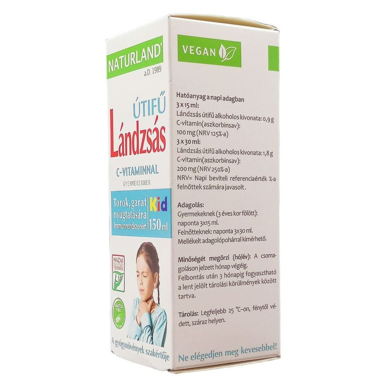 A C-vitamin hozzájárul az idegrendszer és az immunrendszer normál működéséhez, valamint a fáradtság és kifáradás csökkentéséhez. Fogyasztása 3 éves kor alatt nem javasolt. Összetevők (100 g-ra): víz, szacharóz, színezék (egyszerű karamell), lándzsás útifű levél alkoholos kivonata (1,7 g), aszkorbinsav, tartósítószer (szorbinsav). A készítmény 0,59 %(V/V) alkoholt tartalmaz.
