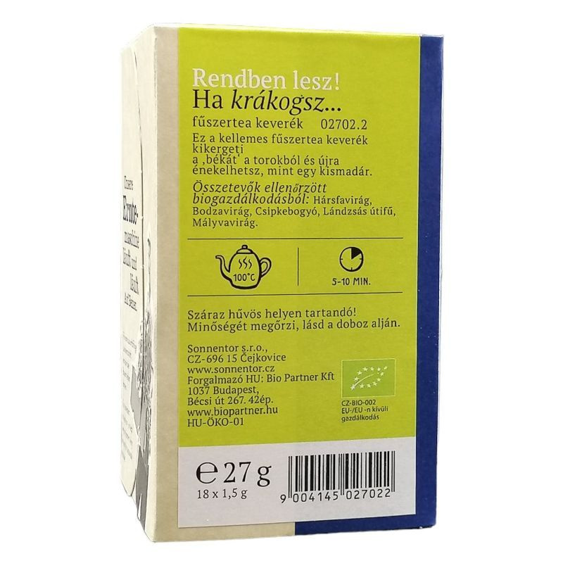 Kellemes gyógyteakeverék hársfa és bodza virággal, valamint lándzsás útifűvel, ha gombócot érez a torkában. Egy csésze enyhén fűszeres tea tökéletes a hideg évszakokban. Gyengéd-fűszeres gyógynövény aromája a mézre emlékeztet. Enyhe fűszeres, gyümölcsös, virágos jegyek a bodza virág és az alma által.