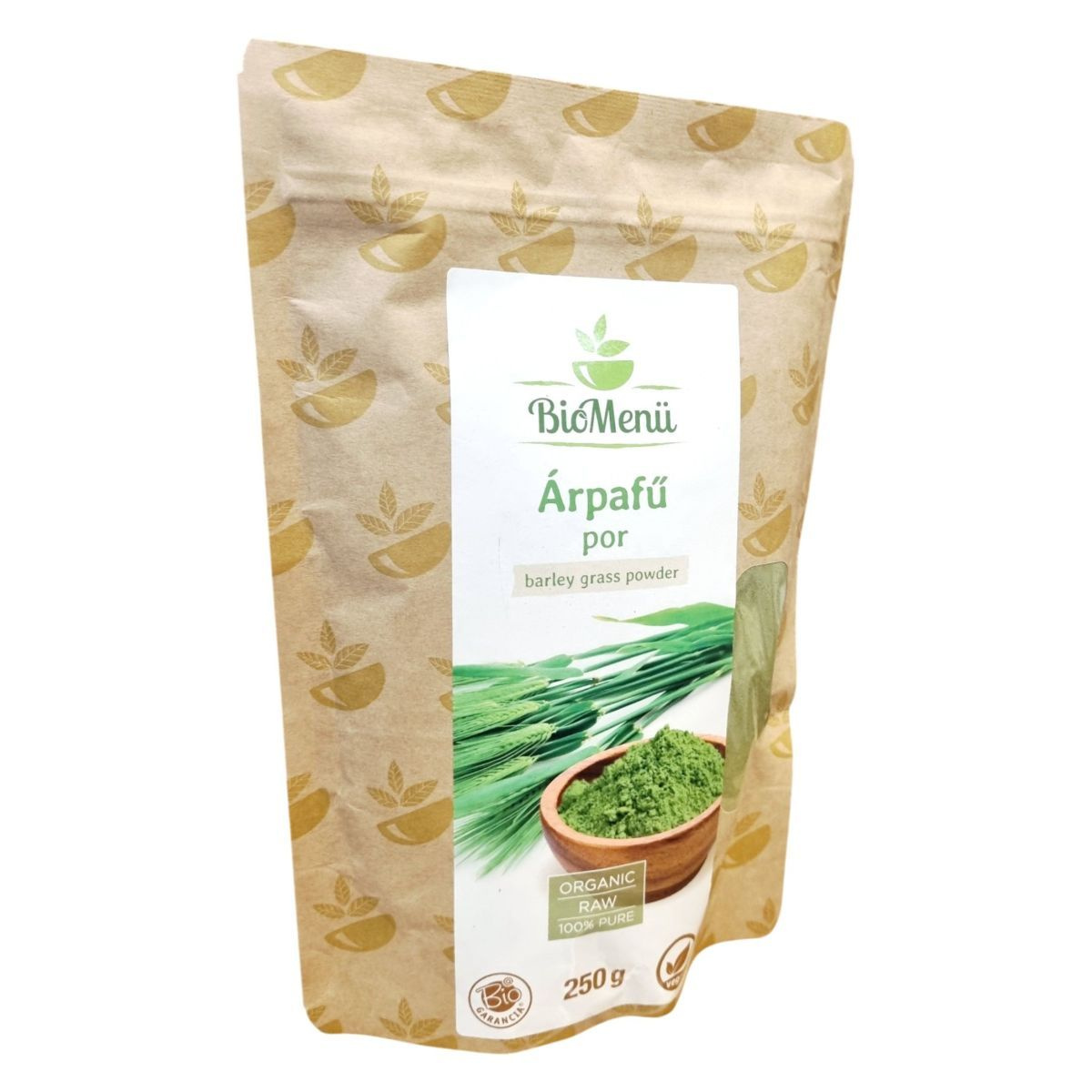 A BioMenü BIO Árpafű por egy 250 grammos kiszerelésű, 100% tisztaságú, organikus és nyers árpafűből készült étrend-kiegészítő. Az árpafű gazdag rostokban és fehérjében, így hozzájárulhat az egészséges táplálkozáshoz. A termék nyomokban tartalmazhat zellert, mustármagot, vadrepceét és glutént. Az ajánlott napi adag 3-5 gramm, amelyet folyadékba keverve lehet fogyasztani. A termék táplálkozási tulajdonságai változhatnak a környezeti feltételektől függően. Tárolása száraz, hűvös, fényvédett helyen javasolt. Az árpafű por az Európai Unióból származik, és a Caleido IT-Outsource Kft. forgalmazza.