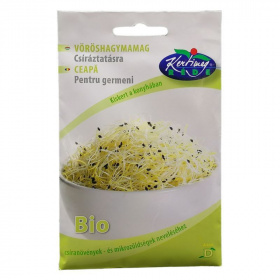 A vöröshagymamag csíráztatásra alkalmas, bio minőségű, erőteljes ízű hajtásokat nevel egészséges ételekhez.