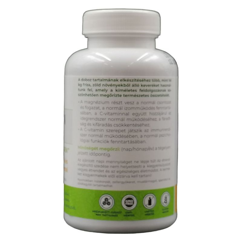 9 zöld növényesszenciájából készült étrend-kiegészítő kapszula. Azoknak, akik sokat vannak úton, vagy kényelmesek. A termékben található növényi alkotórészek fogyasztása hozzájárul a szervezet sav-bázis egyensúlyának fenntartásához. A doboz tartalmának elkészítéséhez fél kg friss, zöld növényekből álló keveréket használtunk.